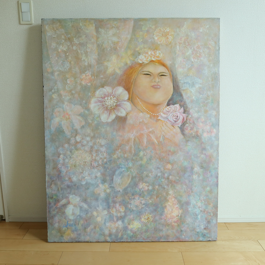 - 【真作】 花ごろも chu 油彩画 50号 美人画 ふっくら デブ専 検) ヌード エロス セクシー 漫画