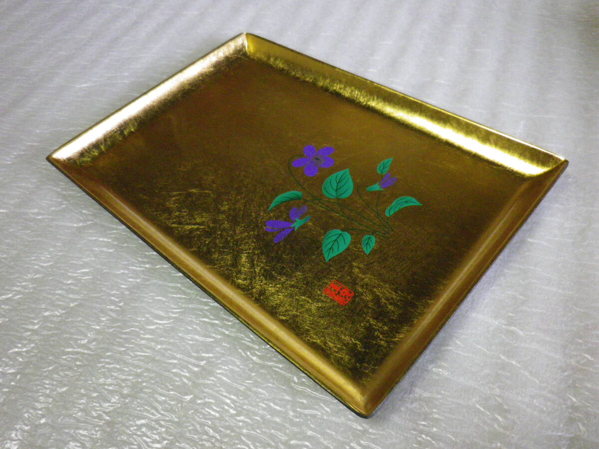 - 金箔工芸品 名刺盆 すみれ 洋金箔 未使用長期保管品