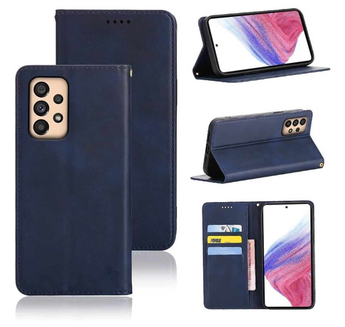 > Galaxy A53 5G ケース 手帳型 SCG15 SC-53C PUレザー TPU カード収納 マグネット スタンド機能付き 深い青 ay233