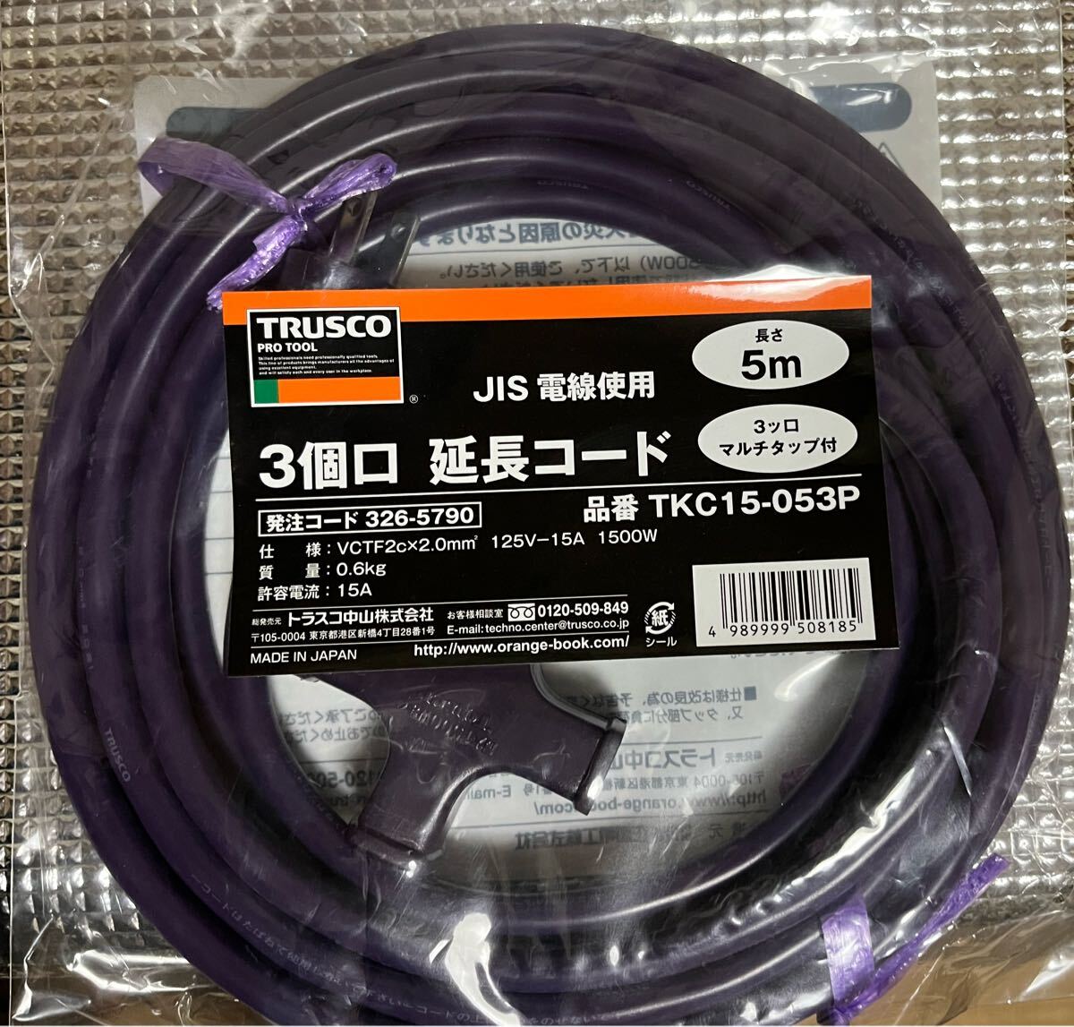 - TRUSCO トラスコ延長コード 5m 3個口 TKC15-053P 100V
