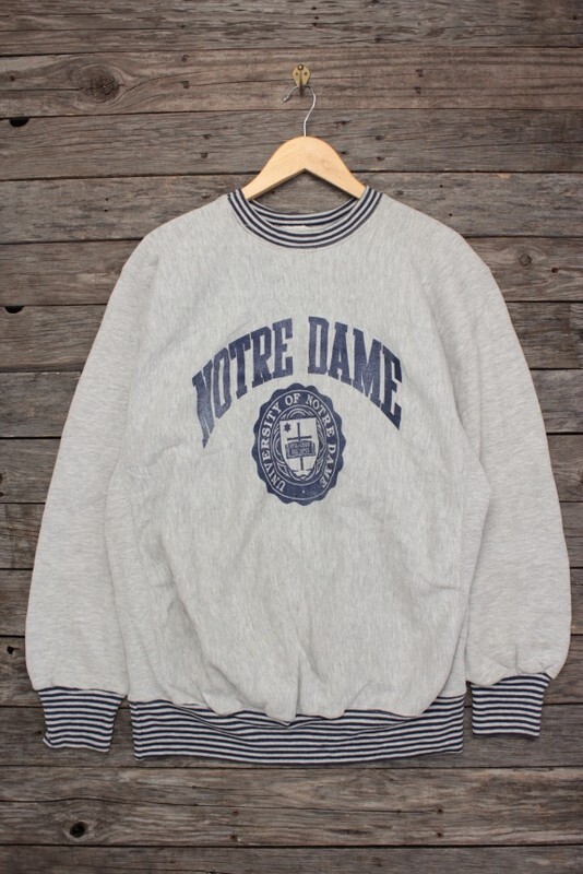 - 90’s MVP リブボーダー リバースウィーブ トレーナー[NOTRE DAME] グレー×紺 表XL
