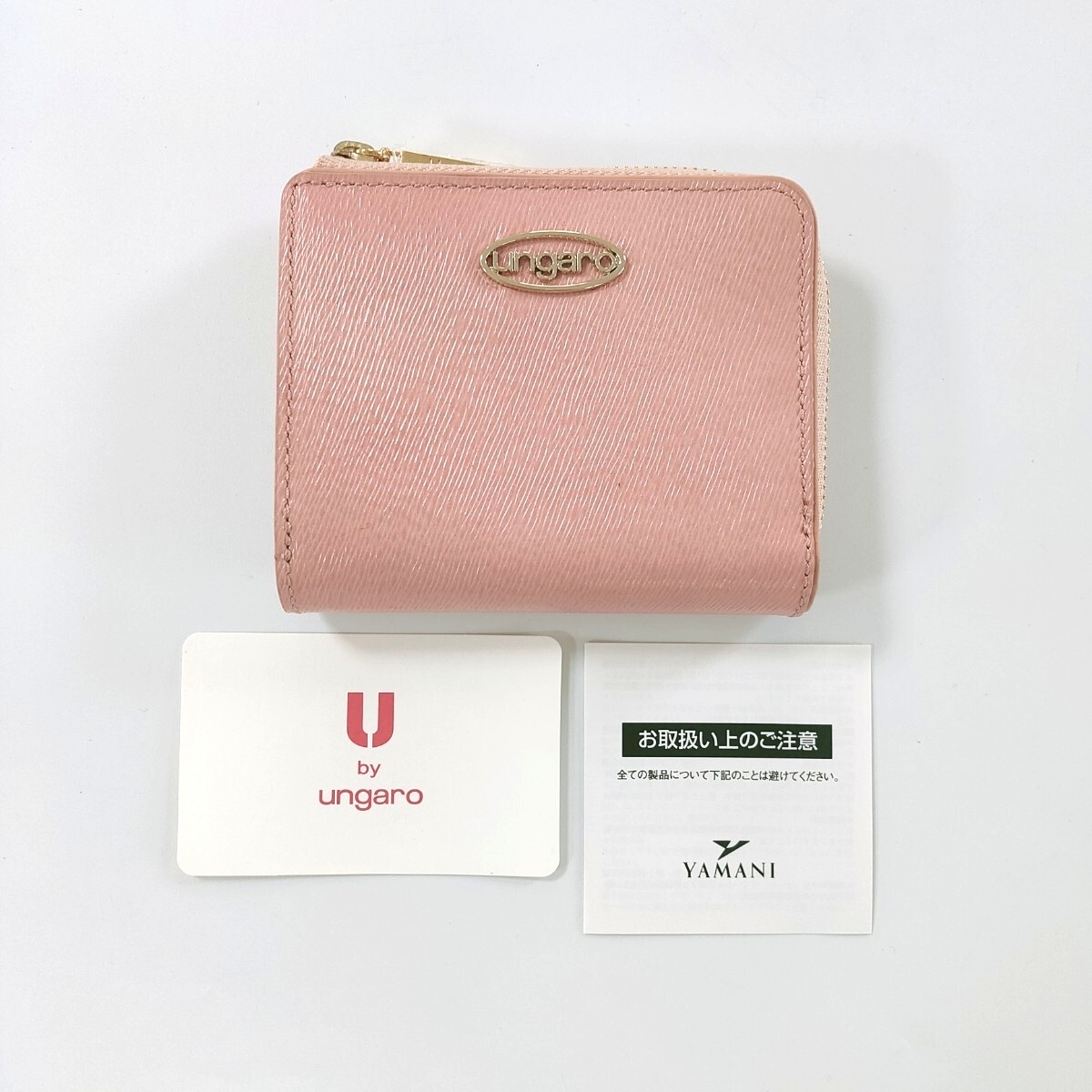 - d 未使用品 ユーバイウンガロ 折り財布 ピンク 二つ折り財布 レザーウォレット 牛革