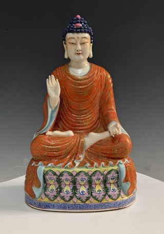 > 『三希堂』 中国美術 [福建会館] 磁器仏像 銘のような刻印有 福建會館 古賞物 古物保証 高さ31cm 縦18cm 幅13cm C22