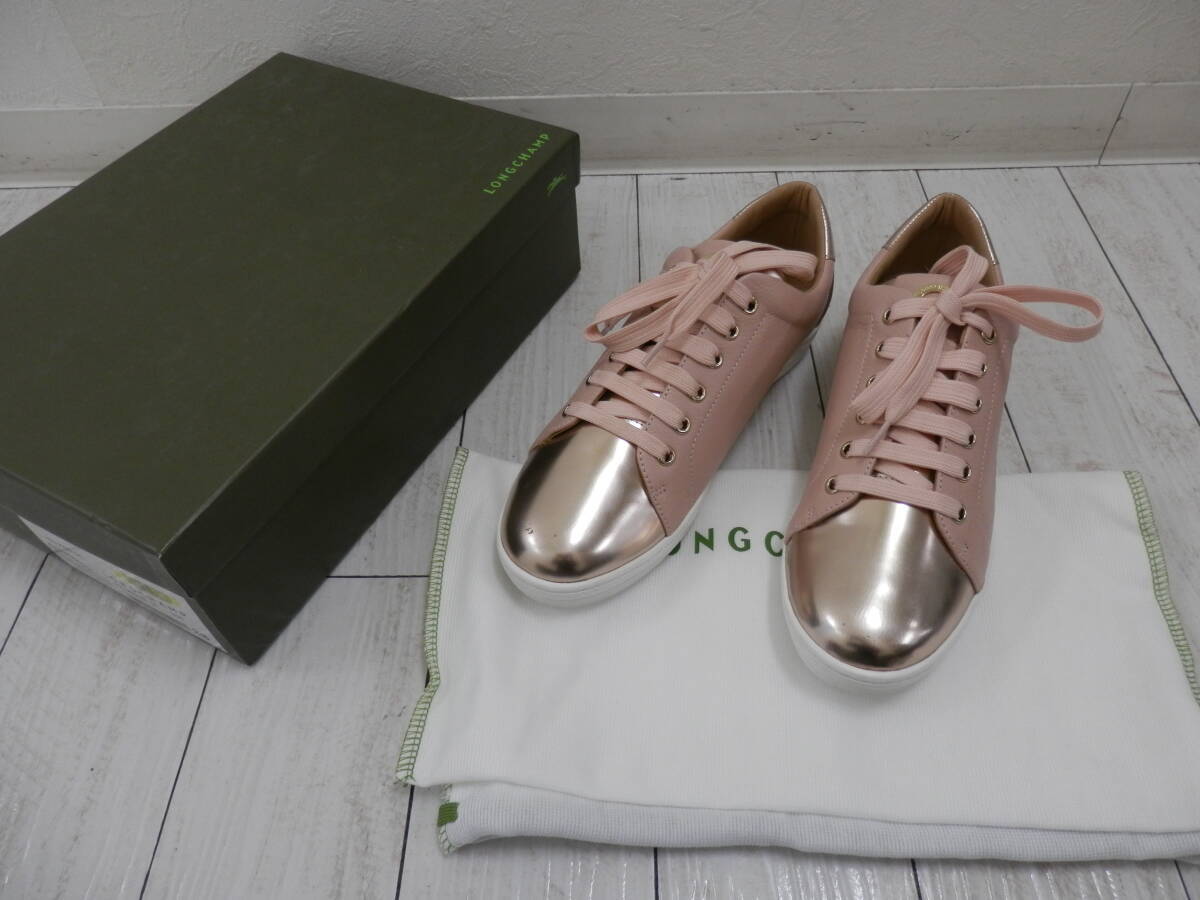 - ロンシャン LONGCHAMP サイズ38 24.0cm ピンク レディース メタリックトゥスニーカー 靴【N33】