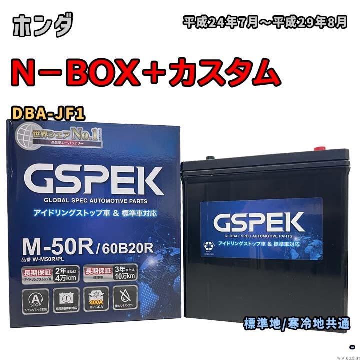 - バッテリー GSPEK W-M50R/PL ホンダ N-BOX+カスタム DBA-JF1 平成24年7月~平成29年8月 対応 M-42R 互換 235