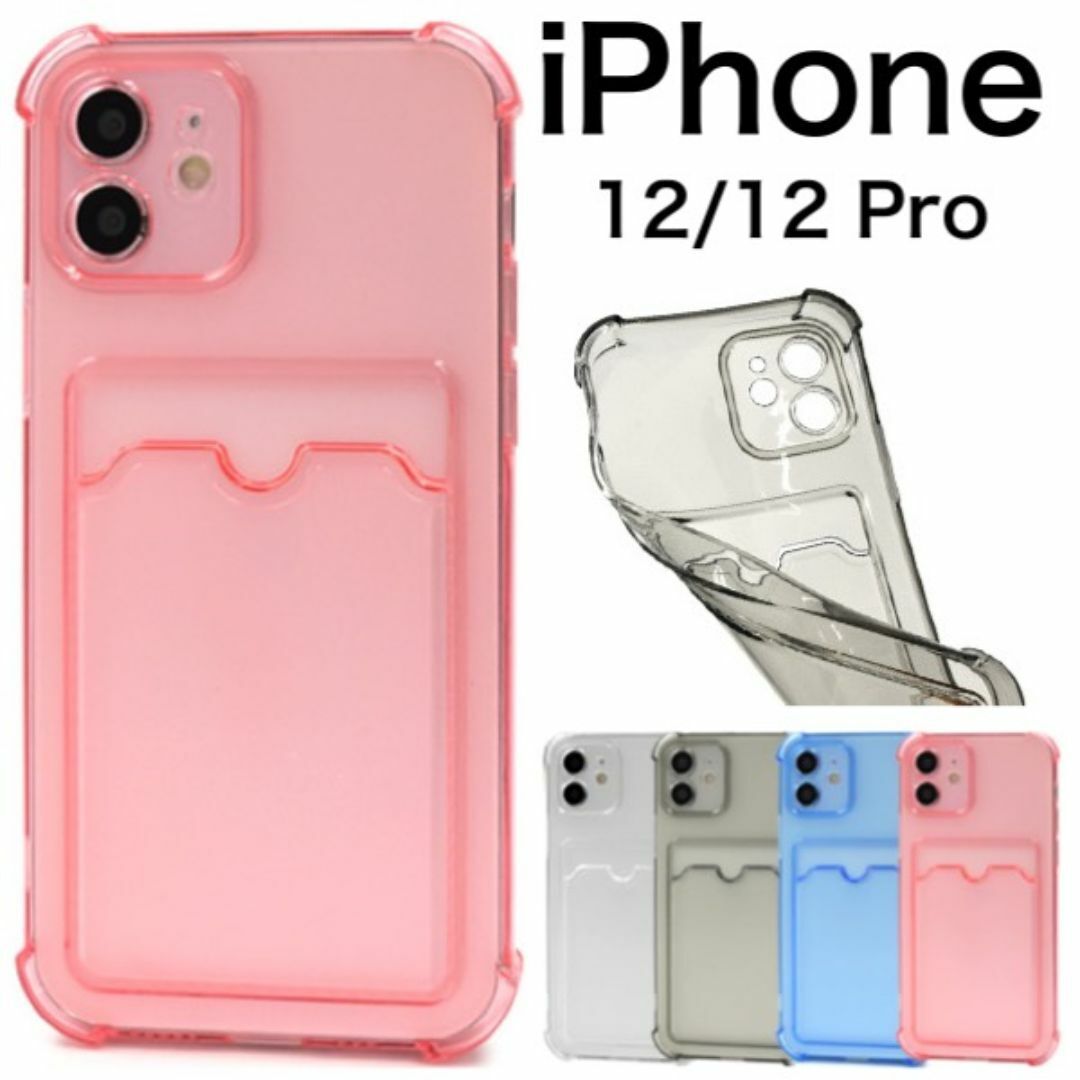 - iPhone 12 / 12 Pro カード収納ポケット付 カラーソフトケース/アイフォン スマホケース