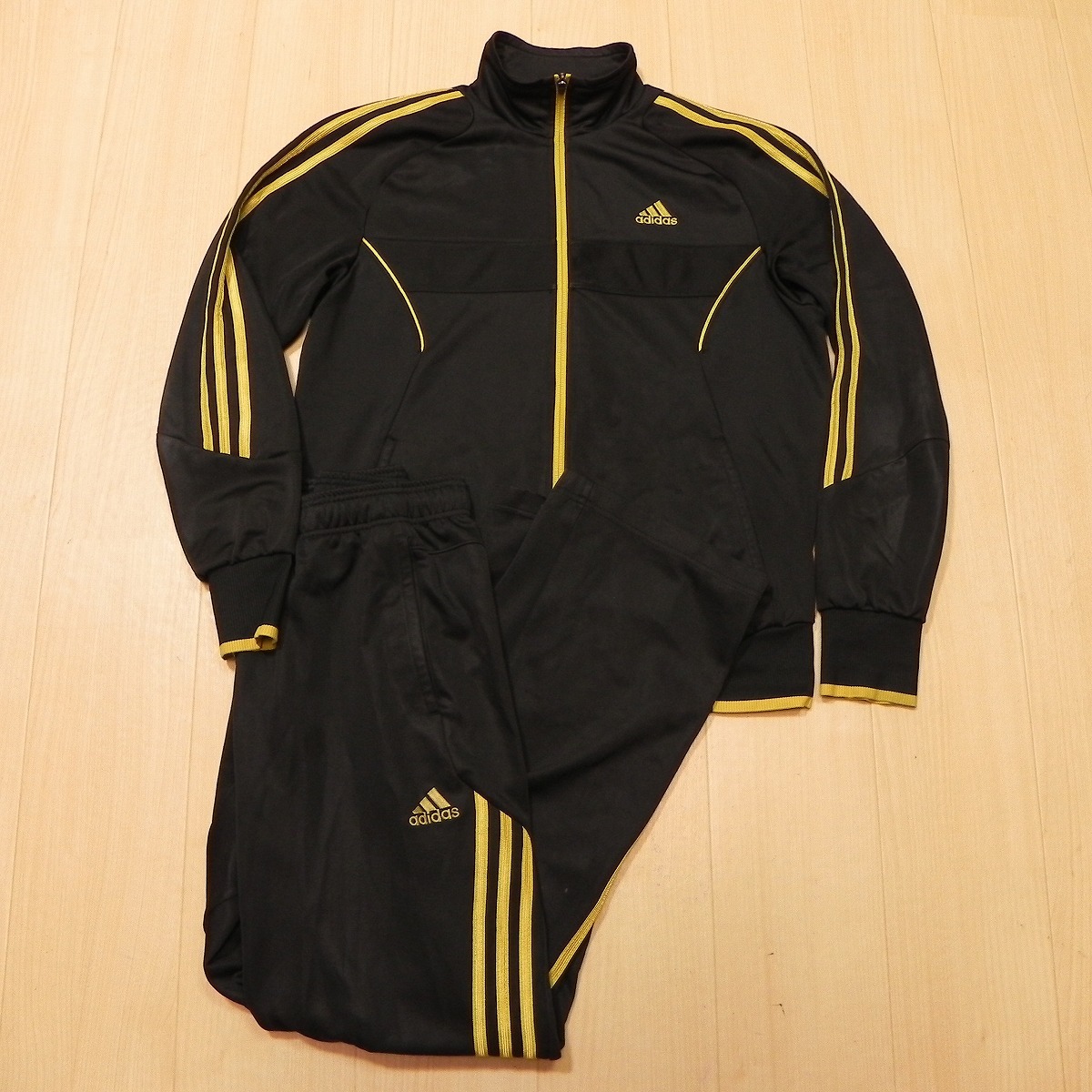 > ★ adidas アディダス CLIMALITE ジャージ セットアップ L ウォームアップ 上下セット 黒 ブラック ゴールド 中古 古着 ★a