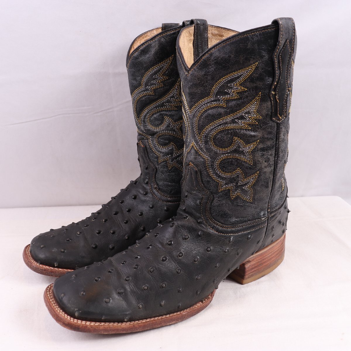 > El General 10 D / 28.0cm 位 エル ヘネラル ジェネラル 刺繍 ウエスタンブーツ オーストリッチプリント カウボーイ ローパー中古 eb1935