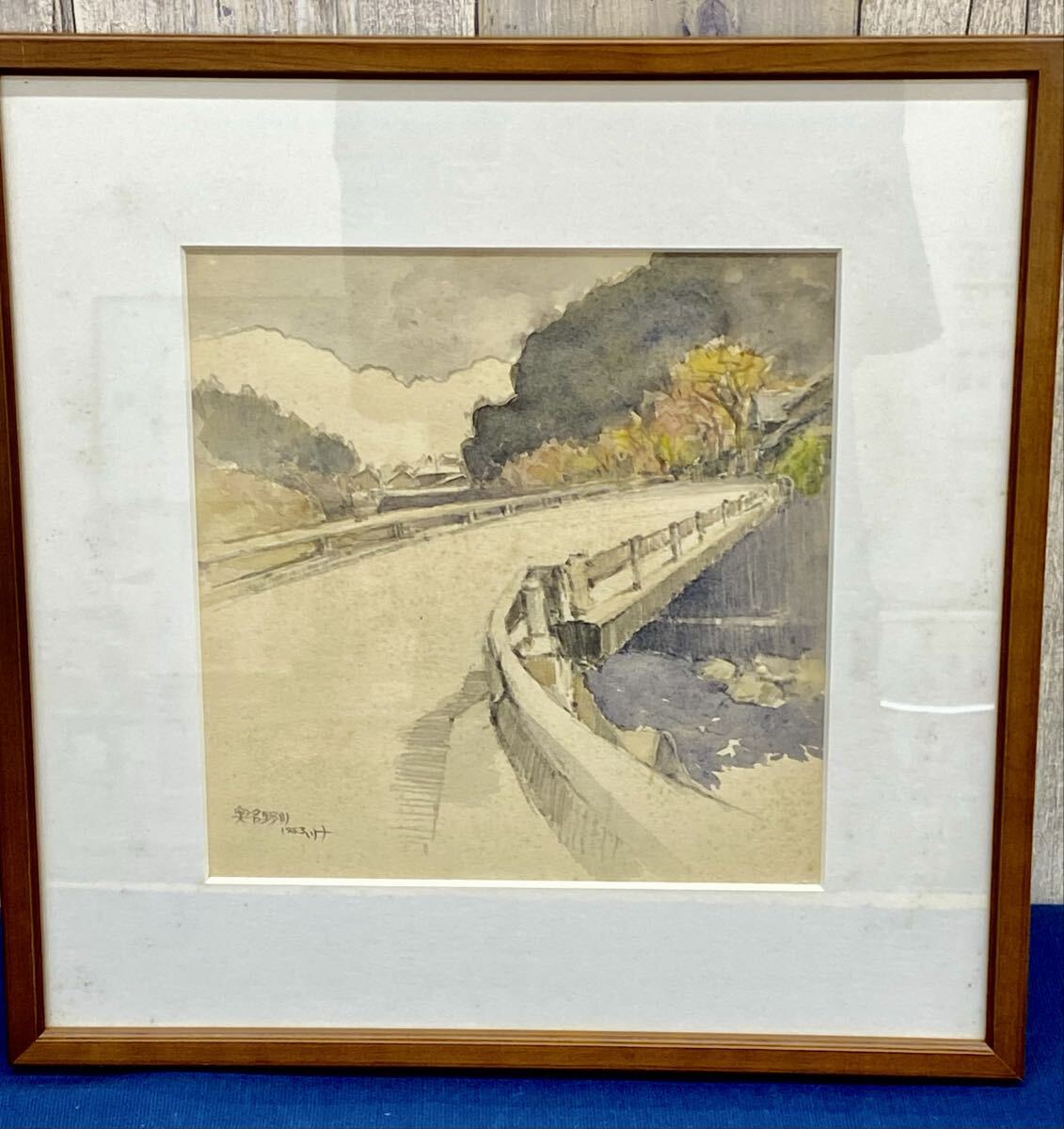 - 〈N8288〉 真作 高知県出身画家 池正孝 奥名野川 1983 水彩画 額装 現状品