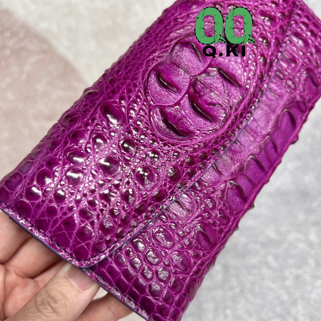- 極上頭革 宝石 クロコダイルレザー 三つ折り財布 ワニ革本物 職人手作り 一枚革仕立て 鰐革 紫
