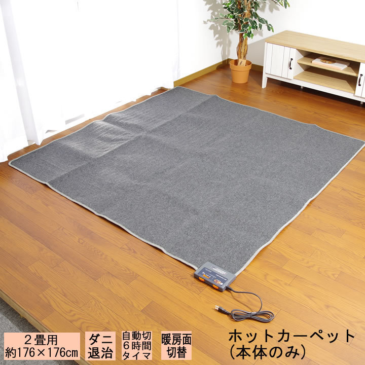 - ホットカーペット 2畳 本体KDI-HC2約176×176cm電気カーペット 2畳 本体 長方形 ダニ退治 6時間タイマー 暖房面切り替え