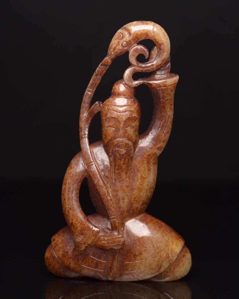 - 『館蔵珍品 和田玉製 細密彫 漁翁得利 置物 賞物』文房具 書道品 貴重物品 収蔵品 中国古美術 時代物 古董品
