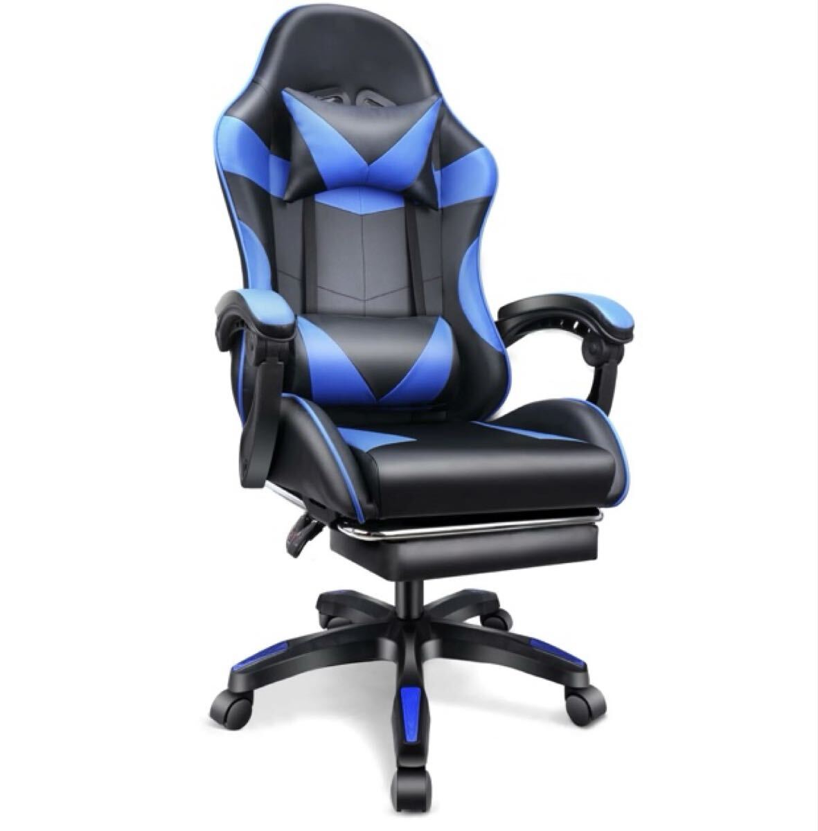 > 【90°〜160°無段階調整】ゲーミングチェア オフィスチェア 在宅ワーク リモートワーク ビジネス 椅子 快適 疲れにくい 青 ブルー G27424