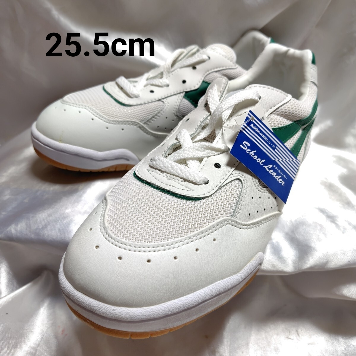 > 【未使用】Achilles 体育館シューズ スクールリーダー 白/グリーン 25.5cm EEE アキレスシューズ 部活 上履き 男女兼用 学校【0917-7】