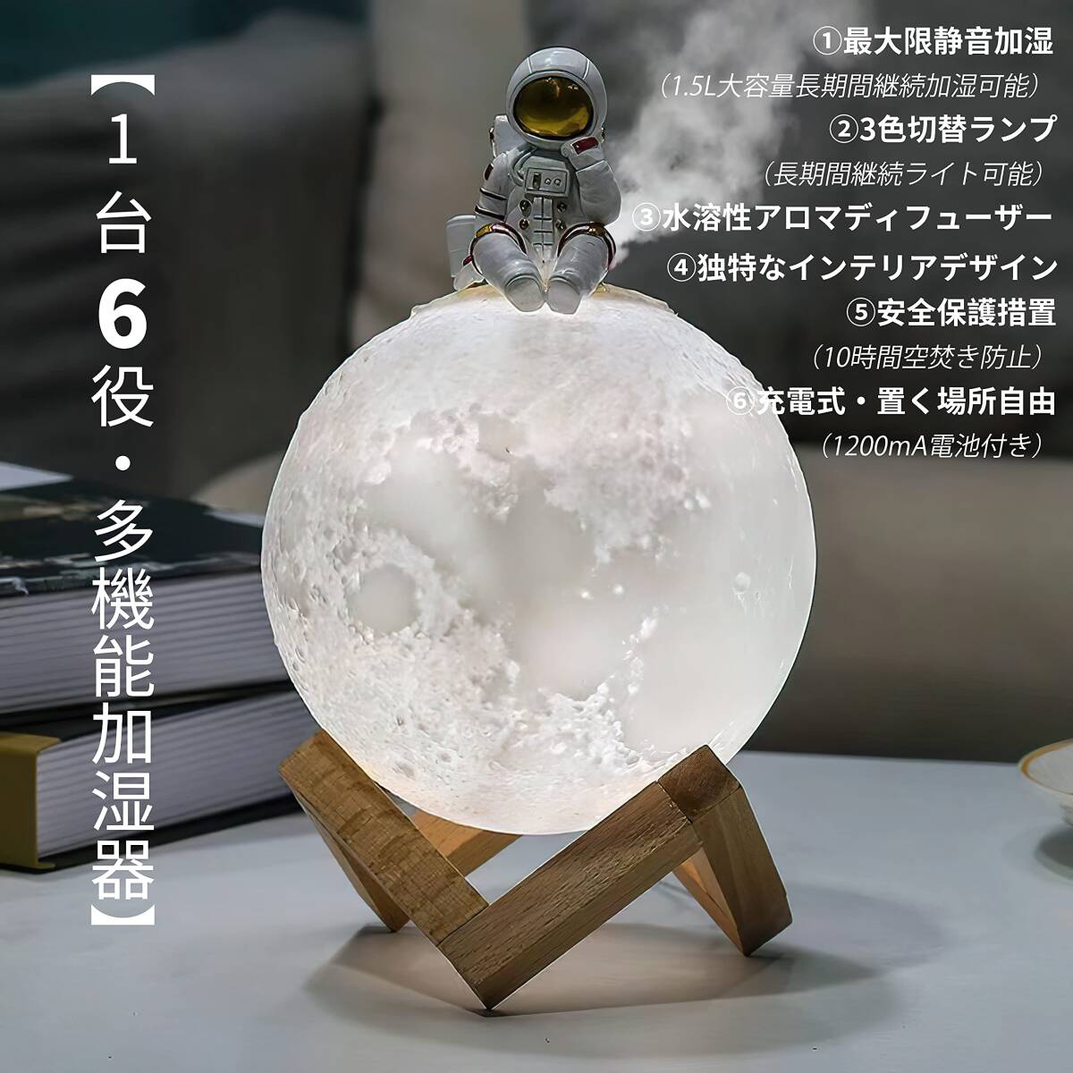 - ☆1台6役 月ランプ加湿器卓上 アロマ 超音波式 人気 1.5L大容量