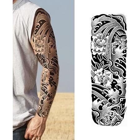 - 【送料無料!タトゥーシール】★蓮花 刺青シール 和柄 フェイクタトゥー 約 14cm×44cm 腕 脚 リアル和彫 防水・耐久性あり! (QB-012)