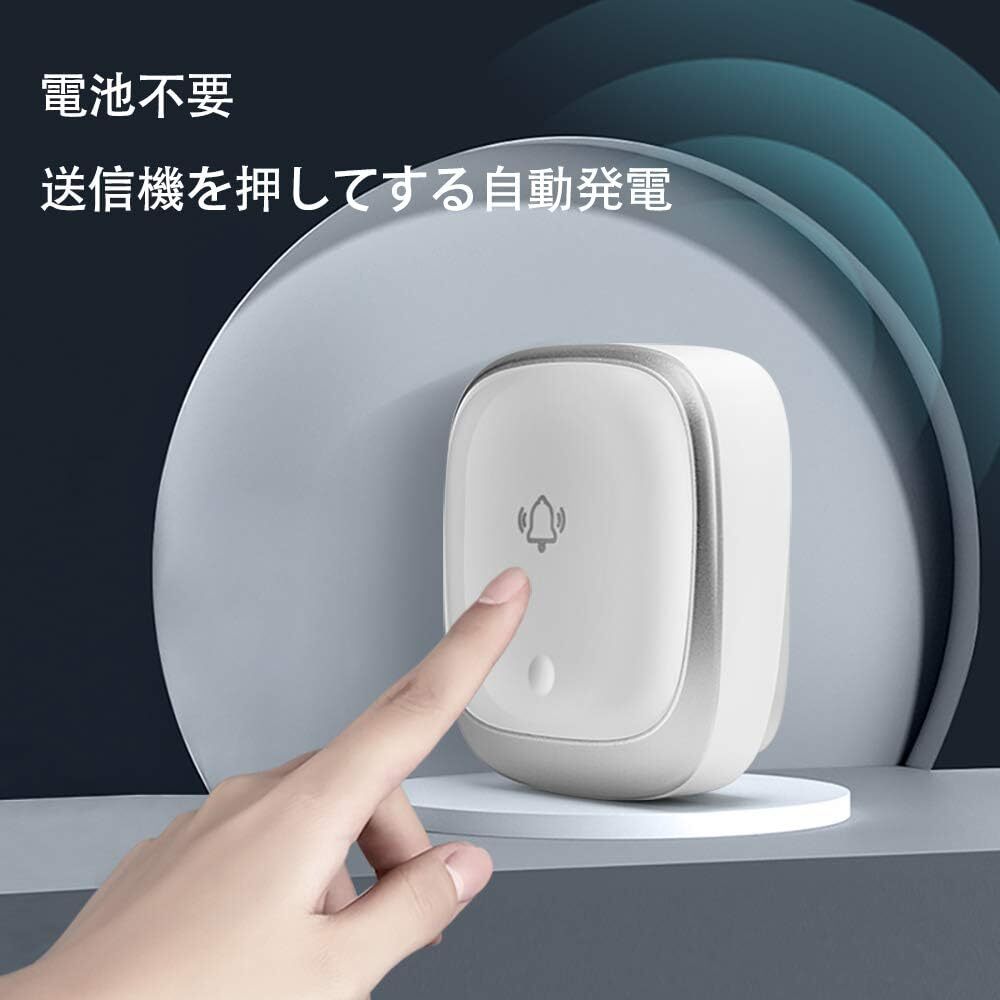 - 耐久性抜群 ワイヤレスチャイム 玄関チャイム 電池不要 自動発電 音と光で呼び出