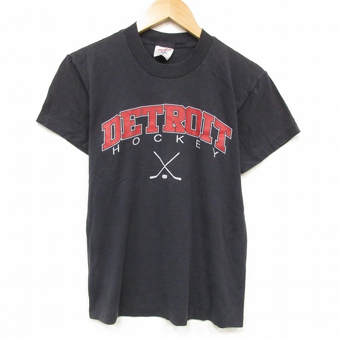 - S/古着 半袖 ビンテージ Tシャツ メンズ 80s デトロイトホッケー クルーネック 黒 ブラック 25sep16 中古