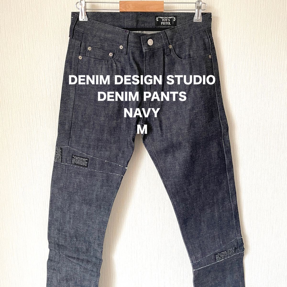 - 【ハンドメイド】デニムパンツ ジーンズ ネイビーブルー M セルビッジデニム 紺色 スリムフィット 匿名配送 ロック メンズ