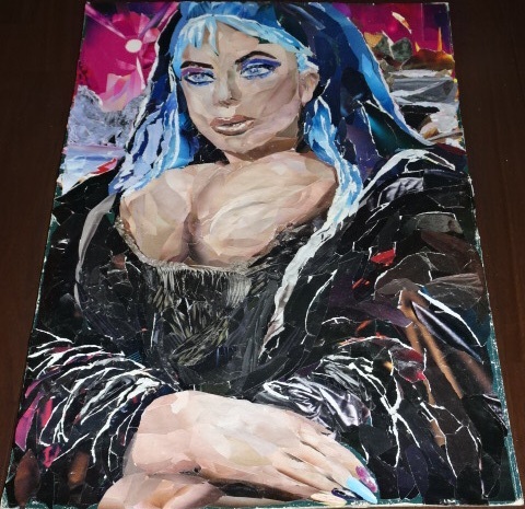 - ■レディー・ガガ風【現代版モナ・リザ (A modern Mona Lisa)】段ボール紙(cardboard)・貼り絵アート(collage art)1枚・額装無(真作)