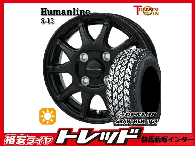 > 群馬藪塚店 新品 夏タイヤアルミセット ヒューマンライン S-15 12インチ4.0J PCD100 4H +42 BK DUNLOP TG4 145R12 6PR 2025年製