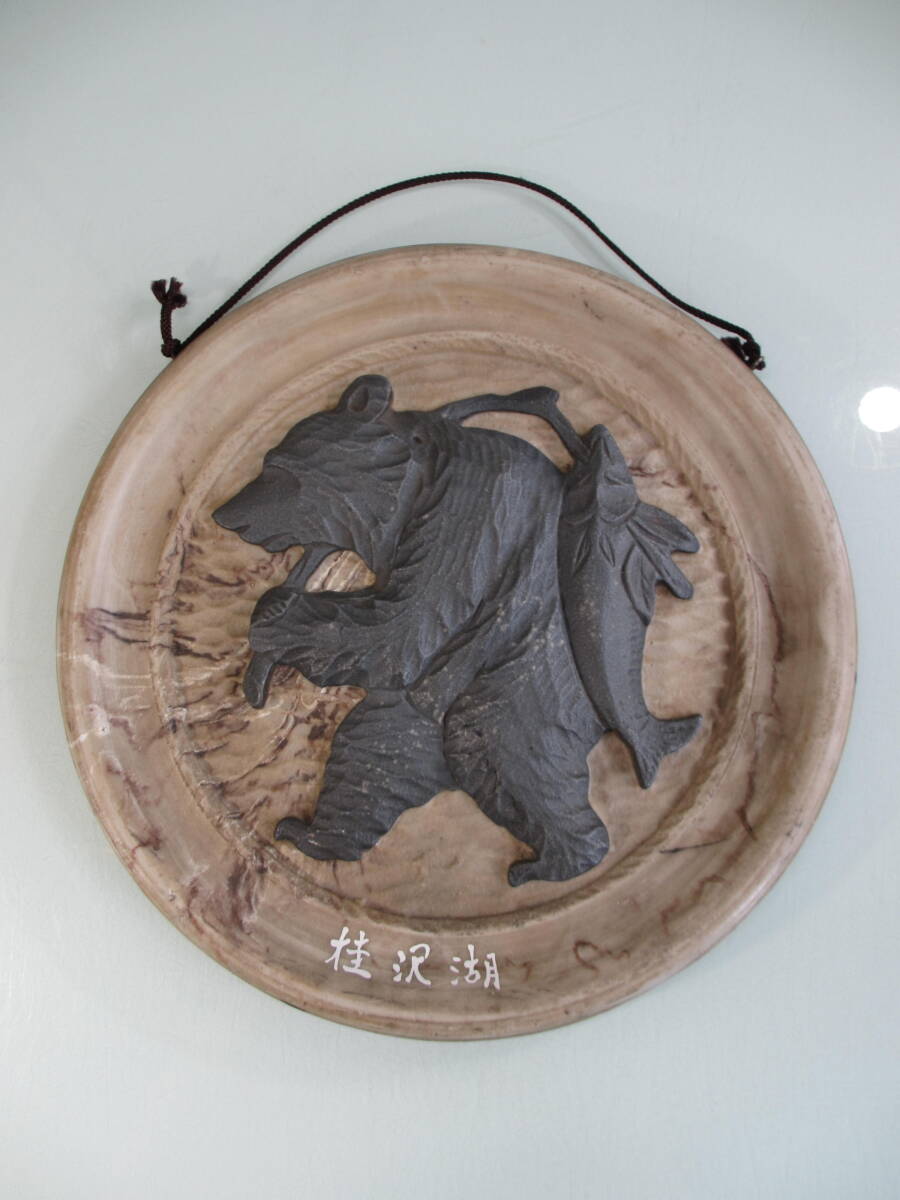 - 羆 ヒグマ タペストリー ご当地桂沢湖 煉物 3kg サン企画工芸(札幌) 昭和レトロアンティーク 中古 当時物