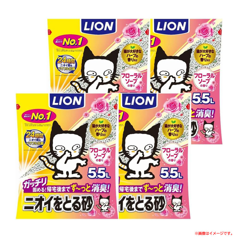 - D7134YO ◆0920_1凹【アウトレット品】猫砂 ライオンペット ニオイをとる砂 フローラルソープ 5.5Lx4 猫 トイレ用品未使用 ペット用品