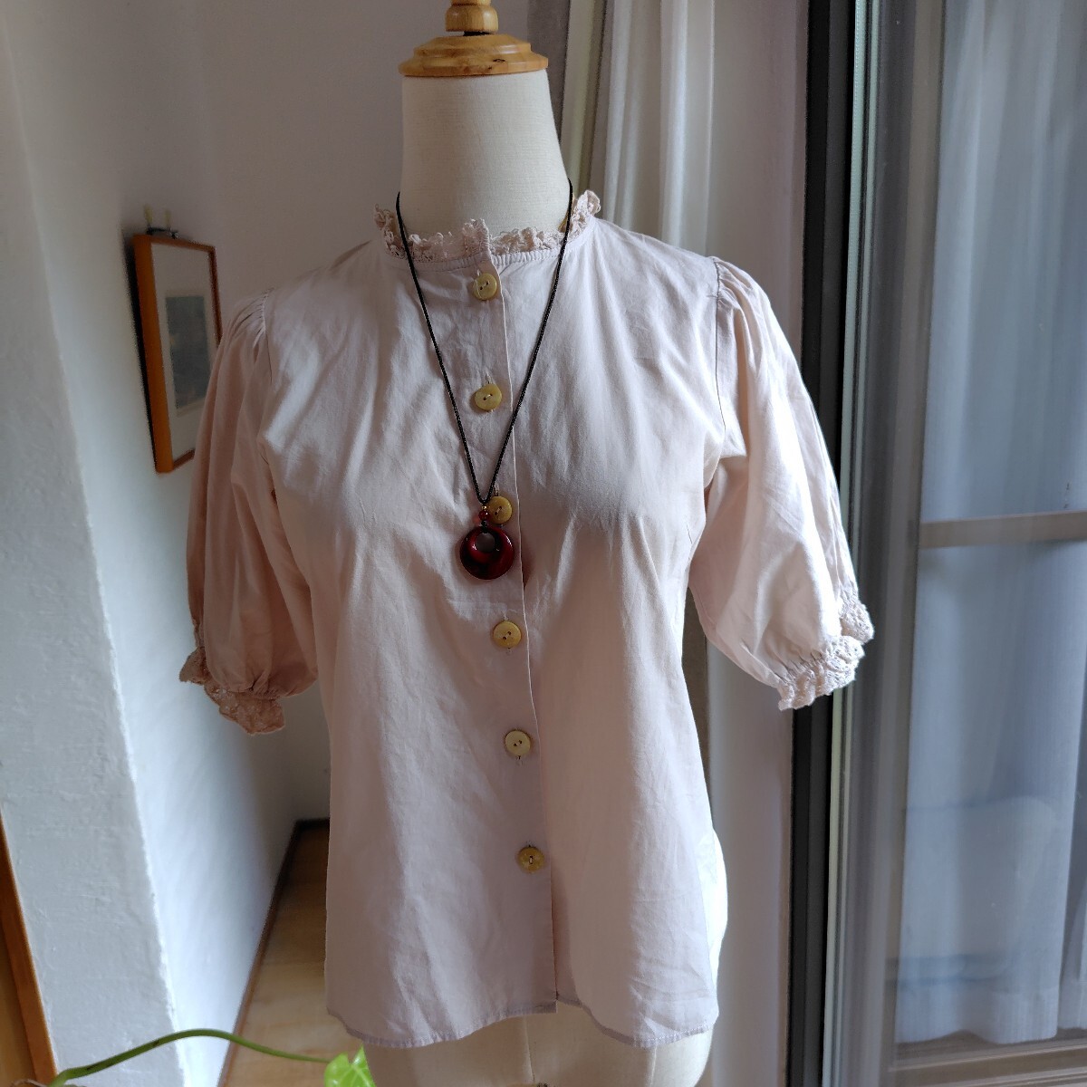 - ナイスクラップ コットン100% レース 合わせ 半袖ブラウス ニュアンスカラー