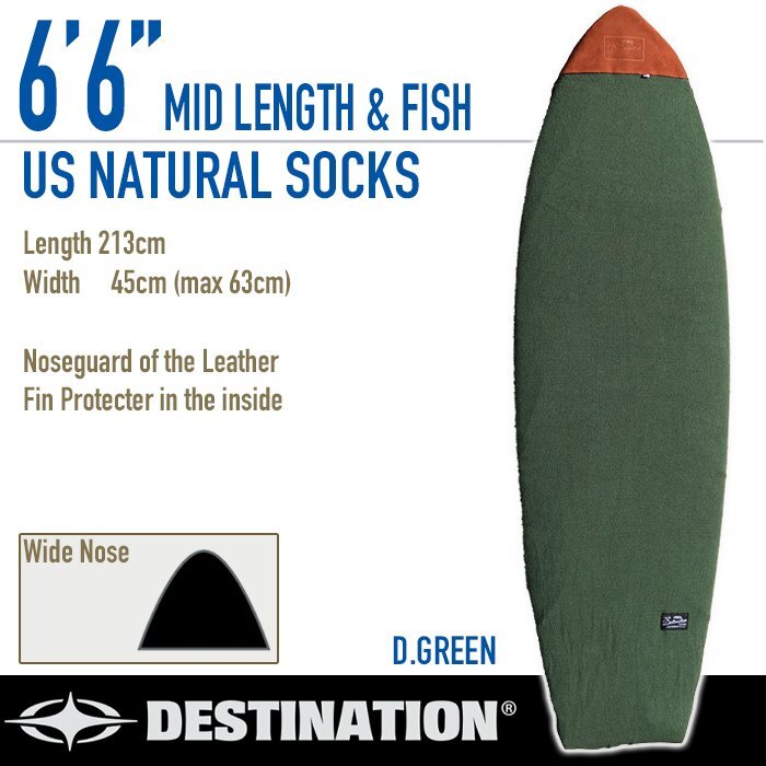 > ■DESTINATION■ニットケース 6'6 フィッシュ・オルタナ D.GREEN レザー製ノーズガード ボードケース ミッドレングス デスティネーション