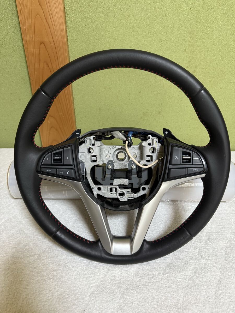 - ★新車外し★スズキ 純正 MK53S スペーシア カスタム レザー ステアリング ハンドル パドル付き 赤 レッド ステッチ ①