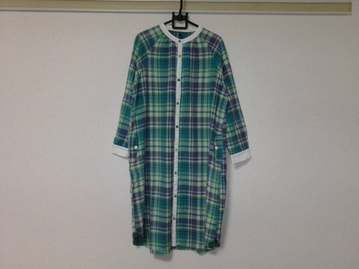 - NORTHERN TRUCKノーザントラック☆エメラルドグリーン緑×ブルー青×パープル紫×水色チェック柄☆長袖シャツのチュニックワンピース Lsize