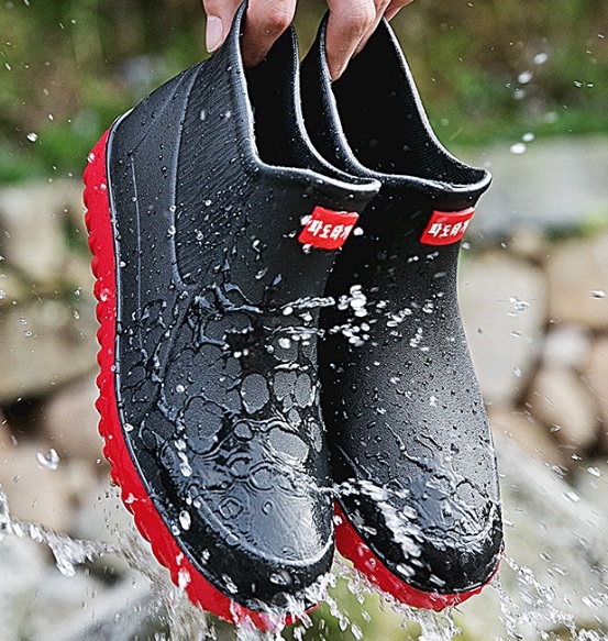 - レインシューズ 雨靴 新品 レインブーツ ショット丈 メンズ 作業 釣り 登山 梅雨対策 防水 防滑 アウトドア 黒赤/25.5cm