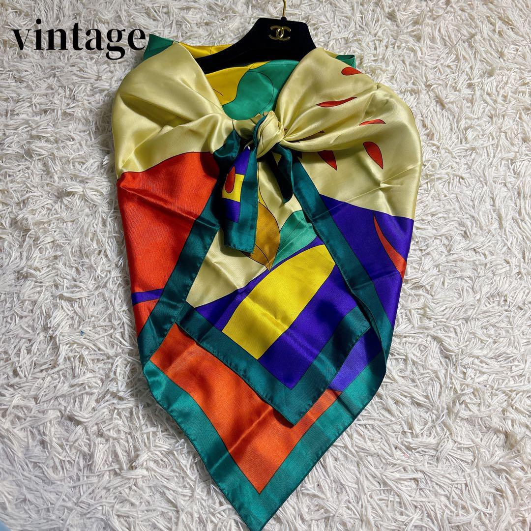 > 美品 シルク調スカーフ バンダナ ショール 大判 花柄 和柄 和風カバン 通勤 オフィスカジュアル 上品 高級感 総柄 ヴィンテージ