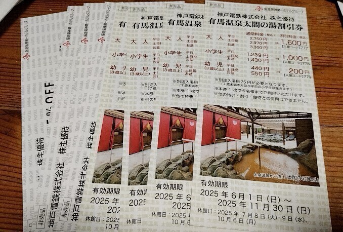> 【最新】神戸電鉄 株主優待券 有馬温泉太閤の湯優待券4枚/割引券4枚 有馬きらり宿泊割引券3枚 株主優待 送料無料