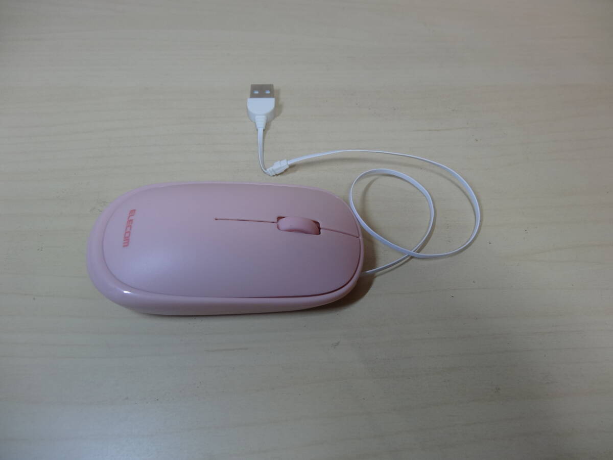 - [送料無料 即決] ELECOM 巻取り式 有線マウス 3ボタン“Slint”マウス M-TM10UBPN ピンク USED