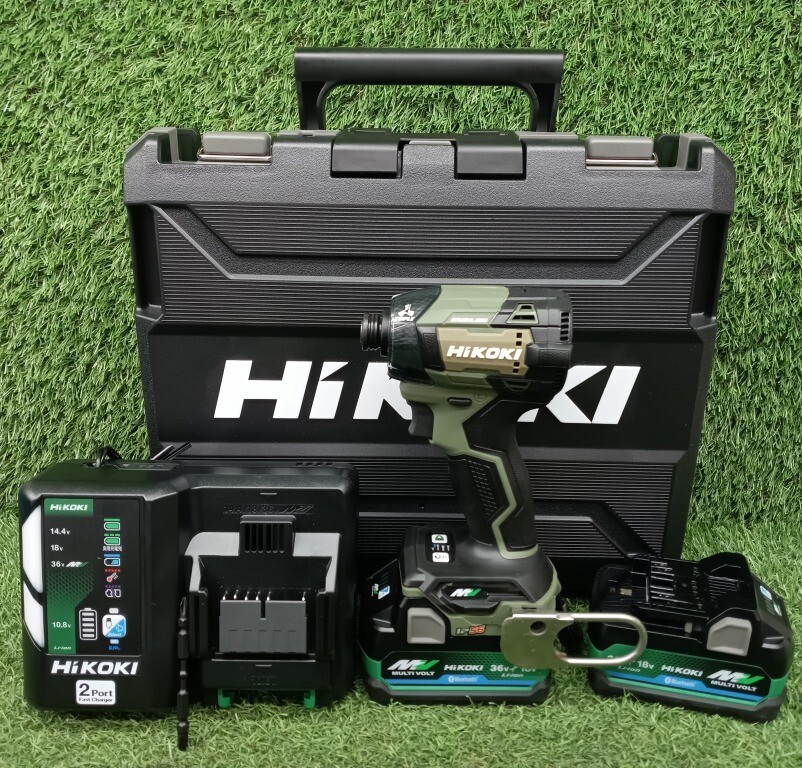 - 中古品 HiKOKI ハイコーキ 36V コードレスインパクトドライバ フォレストグリーン + バッテリー 2個 + 充電器 + ケース WH36DD(2XHGSZ)
