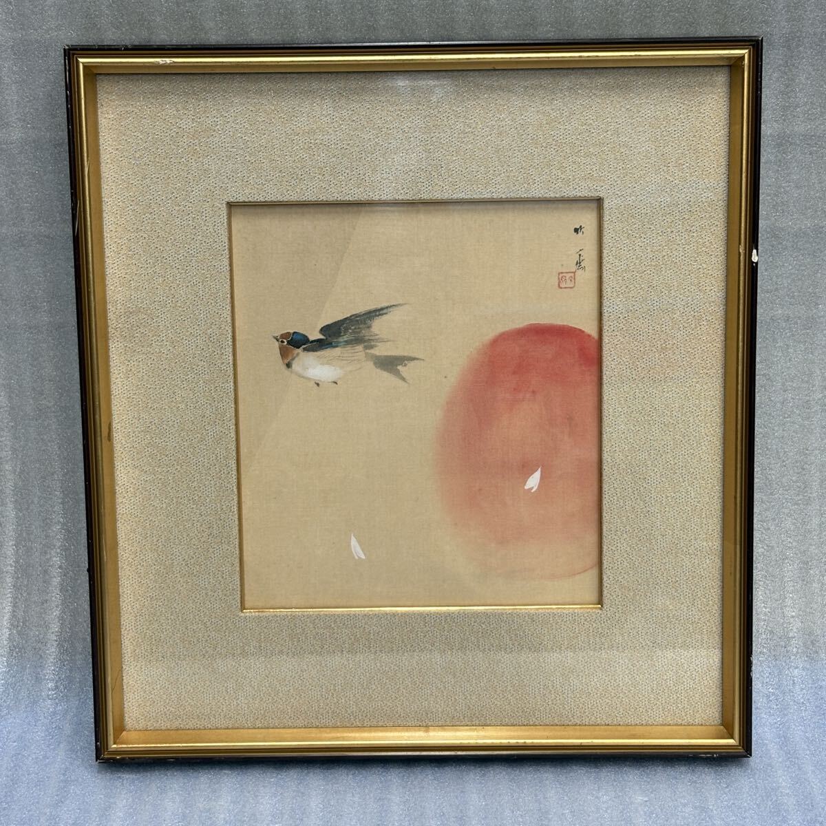 - 【真作】京都画家 山下竹斎 鳥図 色絵 明治~昭和期 山元春挙師事