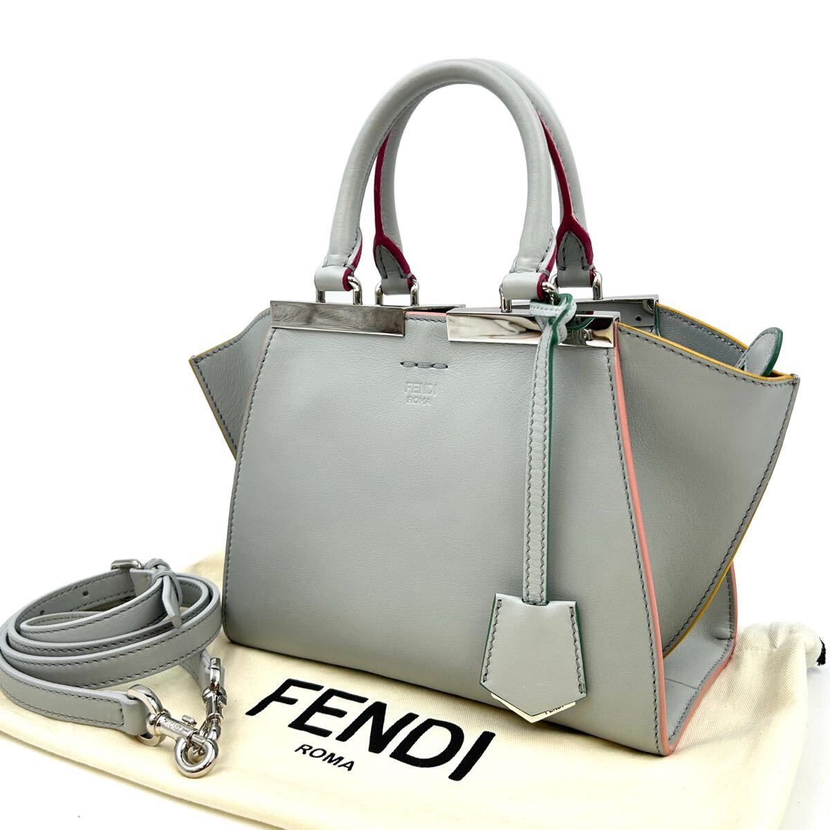 - ◆ 美品 フェンディ ミニ トロワジュール 8BH333 2WAY ハンドバッグ ショルダーバッグ レザー グレー系 マルチカラー 【C2137】