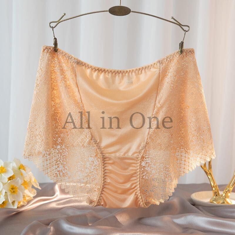 - 145-277-7 光沢 レース セクシー パンツ つやつやショーツ【ベージュ,XLサイズ】レディース 女性 下着 ブリーフ ランジェリー インナー .1