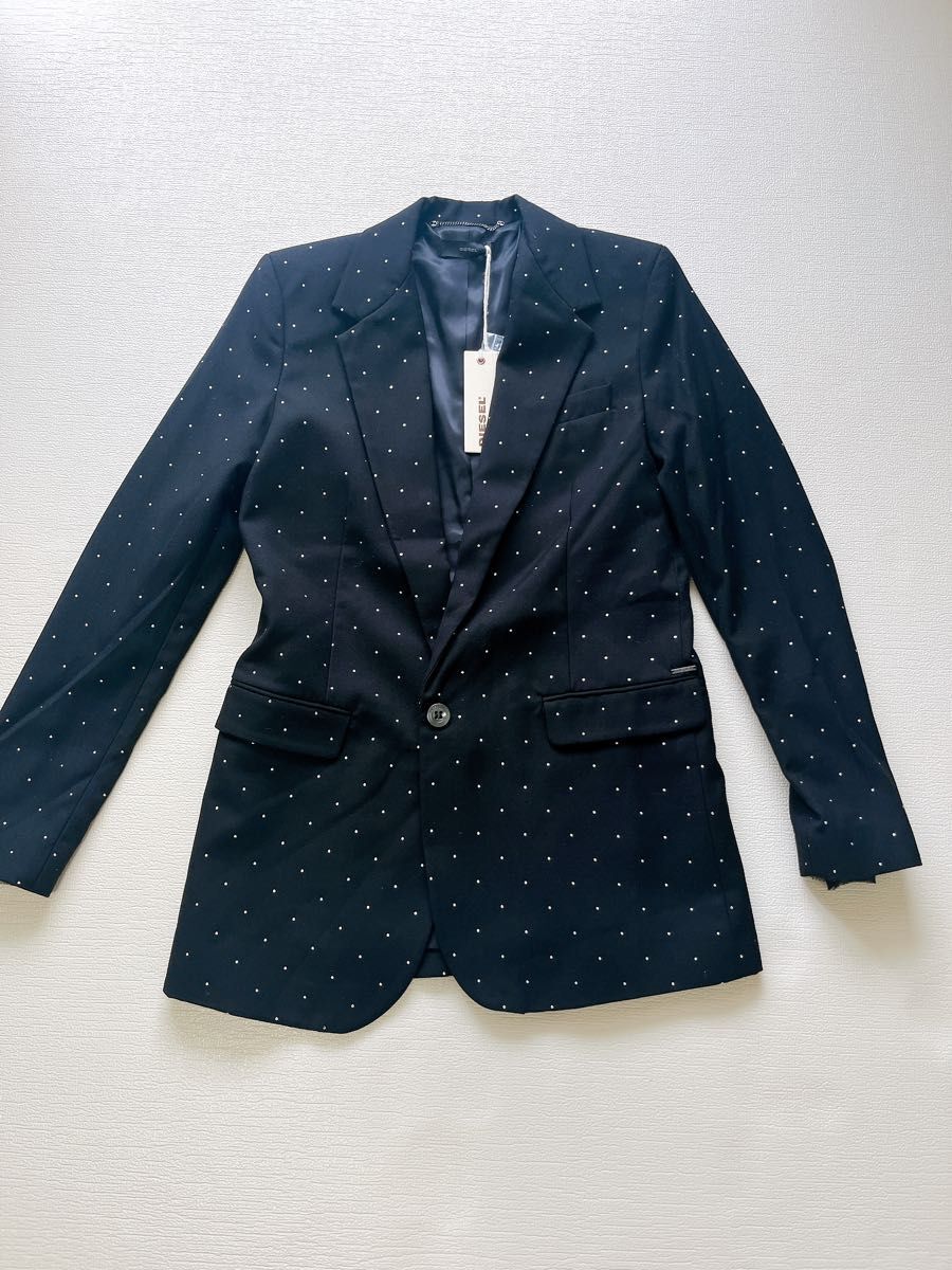 - 未使用 DIESEL ディーゼル ジャケット Sサイズ タグ付 ブラック 黒 スーツ テーラード ドット柄 上品 ビジネス カジュアル アウトレット 服