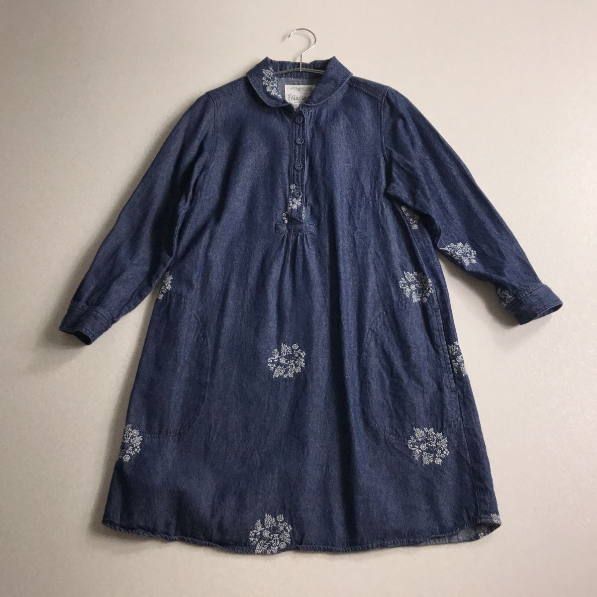 - ☆ Naflat 丸襟 刺繍 デニムライク プルオーバー ワンピース