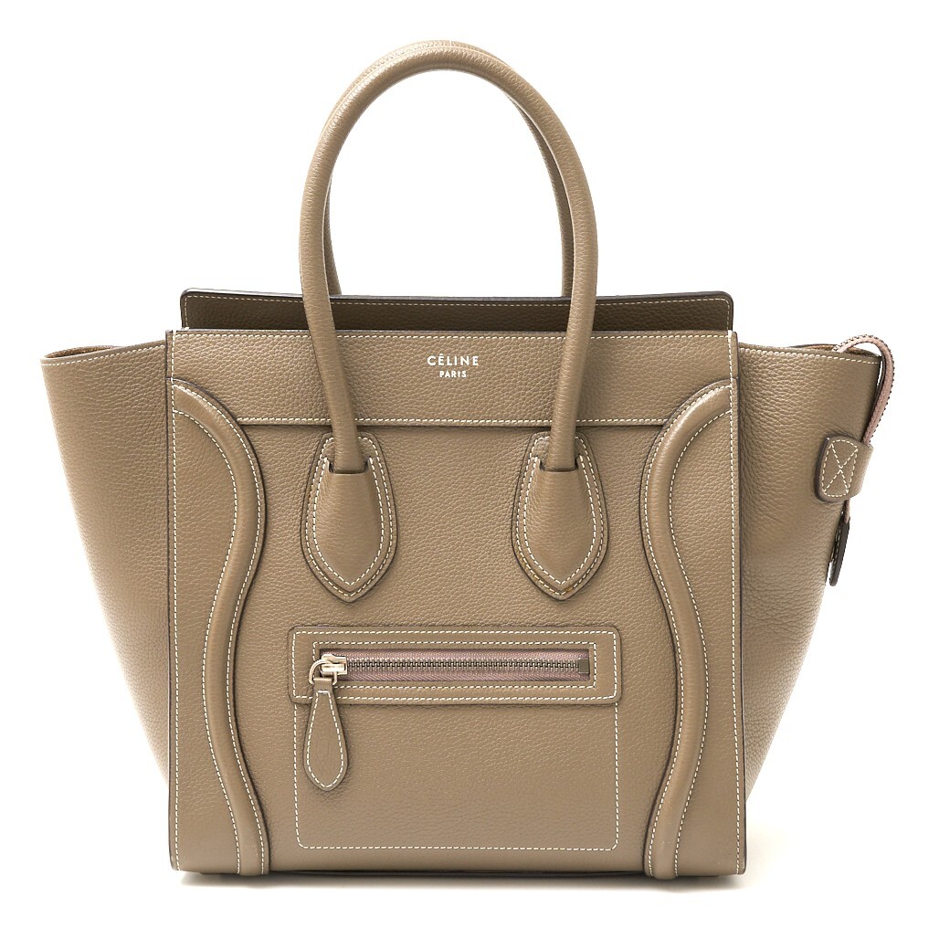 > CELINE セリーヌ ラゲージ マイクロショッパー ハンドバッグ レザー グレージュ×シルバー金具 シンプル カジュアル レディース