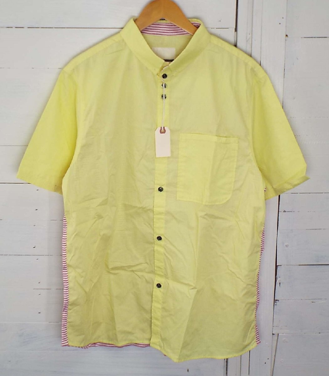 - T3263〇VOO(ヴォー)半袖 シャツ 切替えデザイン/無地×ボーダー/イエロー サイズ3 SAMPLE/サンプル品/タグ付