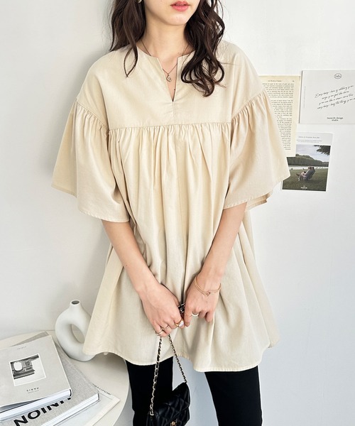 - 「GeeRA」 半袖ワンピース X-LARGE ライトベージュ レディース