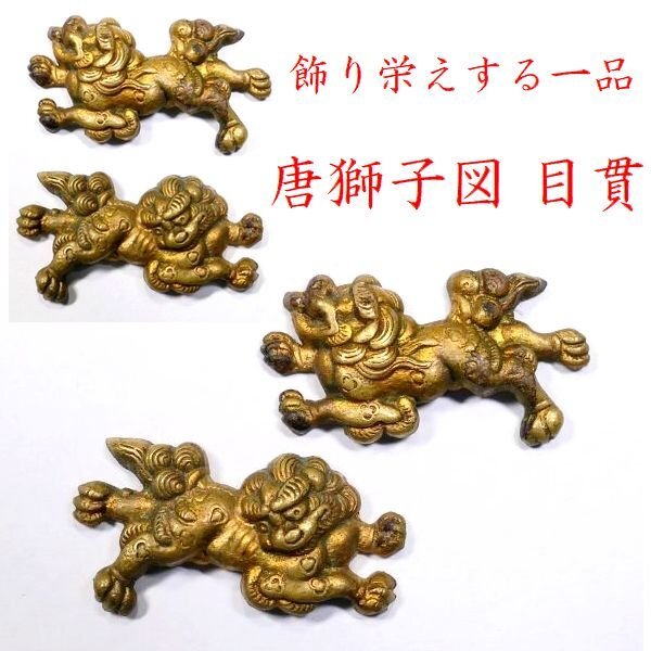 > 【 恵 #1853 】 飾り栄えする一品 力強き唐獅子図 真鍮地目貫 検:鍔/縁頭/切羽/ハバキ/刀剣/刀装具