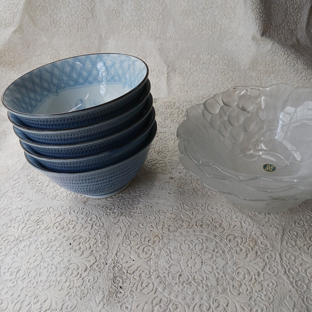 - 美濃焼き聖窯丼5個+HOYA ガラス器3個 未使用保管品