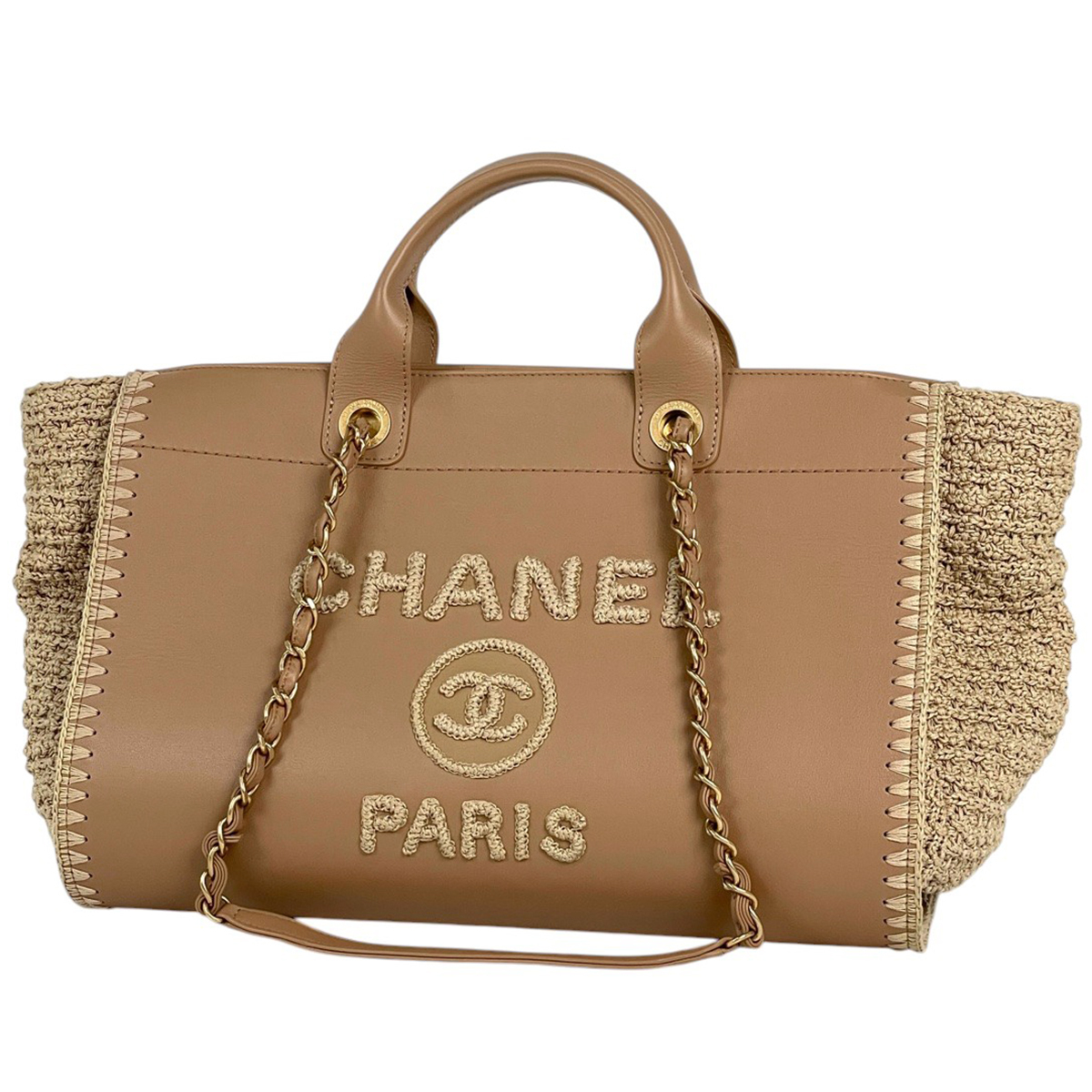 > シャネル CHANEL ドーヴィル GM チェーン ココマーク ニット トートバッグ レザー ベージュ レディース 【中古】