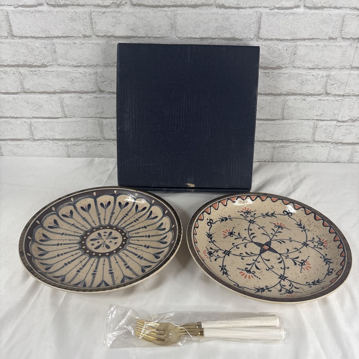 - Ryuho 大皿 ペア 24cm フォーク付き 和食器 日本製 未使用 食器 龍峰窯