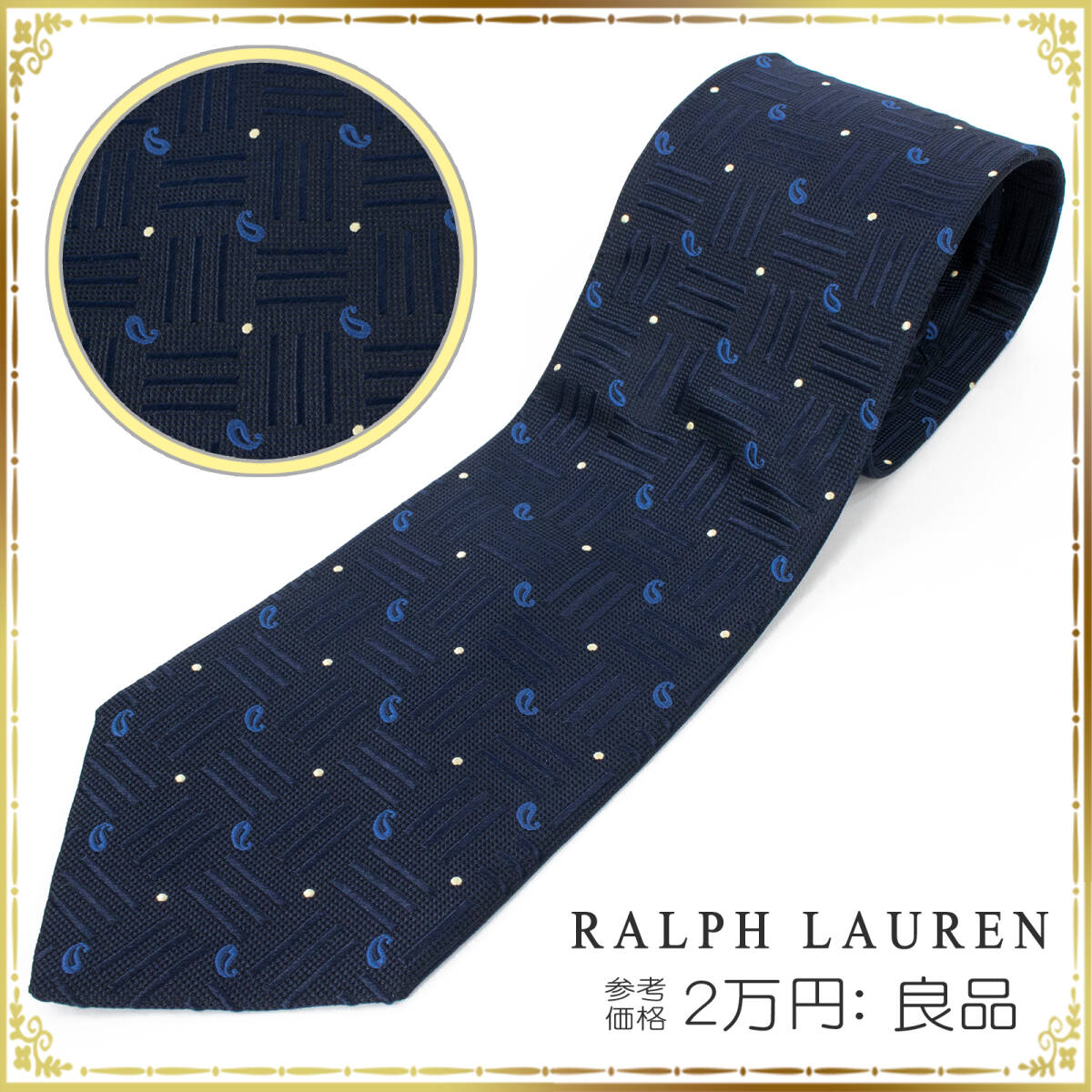 > 【全額返金保証・送料無料・良品】ラルフローレンのネクタイ・チャップス(CHAPS)・正規品・総柄・ドット・ライン模様・日本製・メンズ
