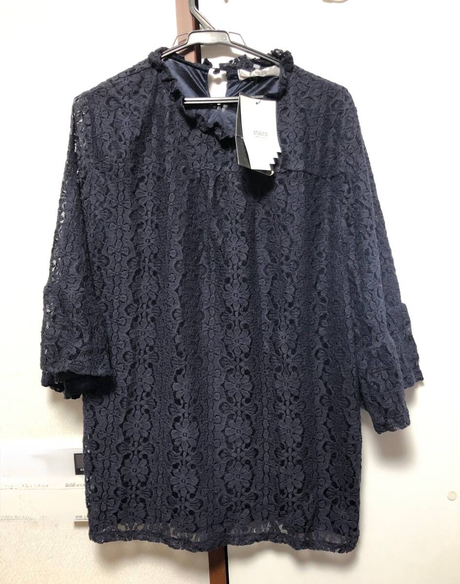 - stairs★総レース5分袖丈トップス・ネイビー【4L】未使用 背中部分は無地です